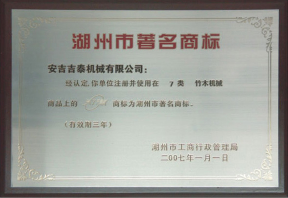 “天賦”牌機械產品,被評為浙江省湖州市名牌產品